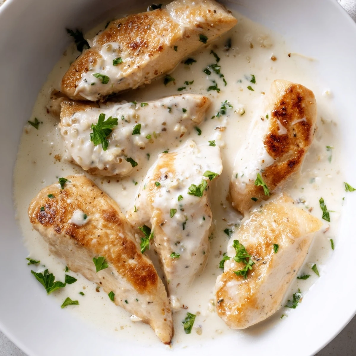 This luscious garlic chicken features tender breasts seared to golden perfection, then simmered in a velvety sauce of garlic, onions, heavy cream, and Parmesan. The entire dish comes together in just 35 minutes, making it ideal for weeknight dinners or intimate gatherings.