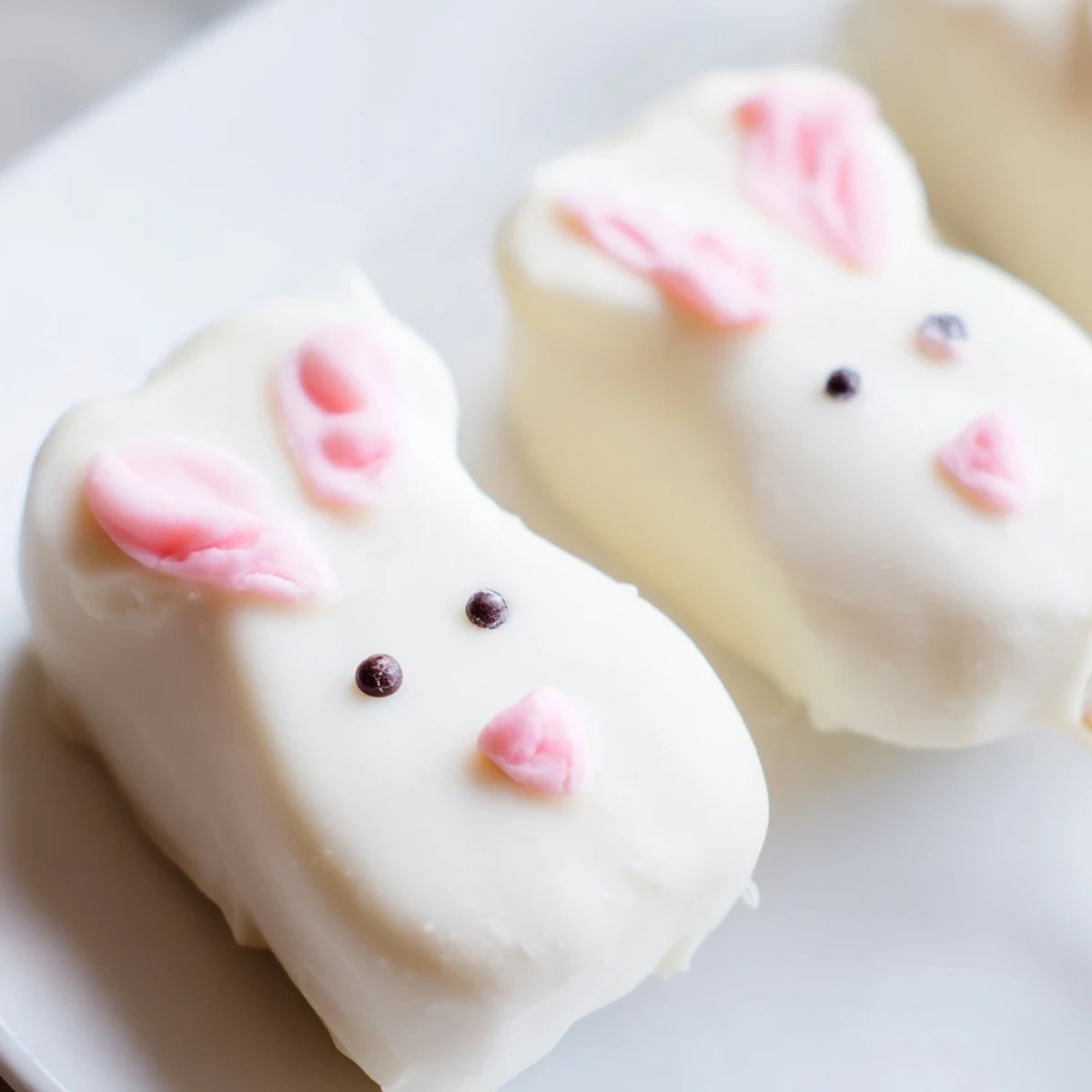 After making these dozens of times, Ive found that simple decorations often look the most charming. A single pink candy nose and two eyes are sometimes enough, especially when the white chocolate coating is perfectly smooth.